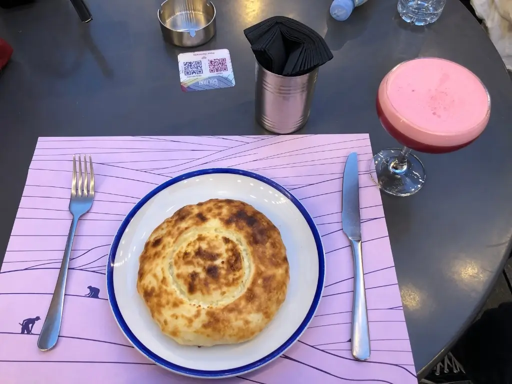 I opted for one of their eggless covered pitas, and while the filling didn’t initially impress me, the delicious dough paired with a different cheese in the middle won me over. I tried the Sour Cherry cocktail, but found it to be sweeter than expected, lacking the sour kick I anticipated. However, those who tried the lemonade seemed to enjoy it, as it was a popular choice among other customers.