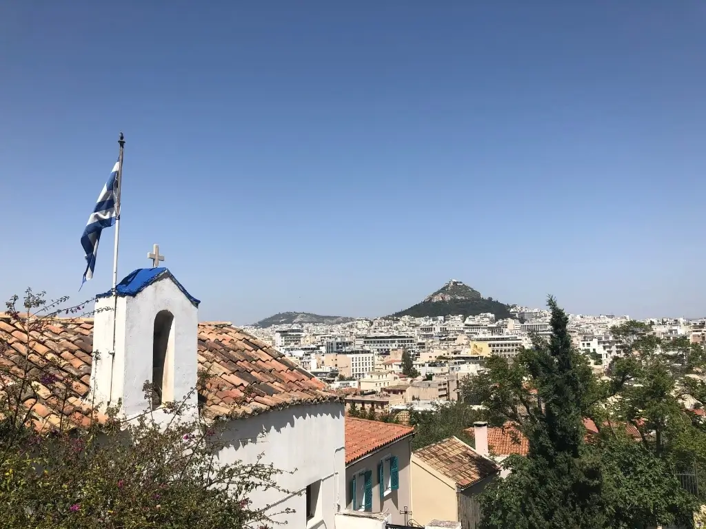 When we reached the area around Saint George of the Rock Church, we were greeted by a beautiful view of Athens. We spent more time there than expected, especially when we were lucky enough to catch the church bells ringing and a street musician playing nearby.